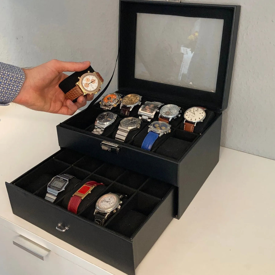Schmuck- und Uhrenbox (20 Uhren) - Schwarz