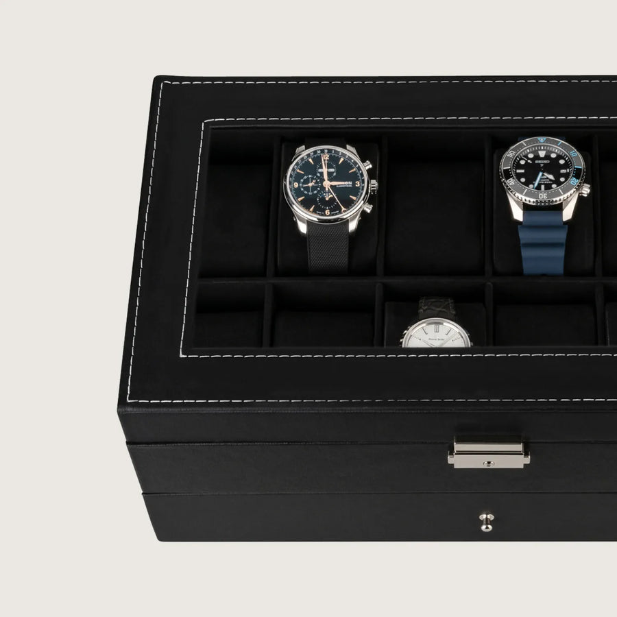 Schmuck- und Uhrenbox (12 Uhren) - Schwarz