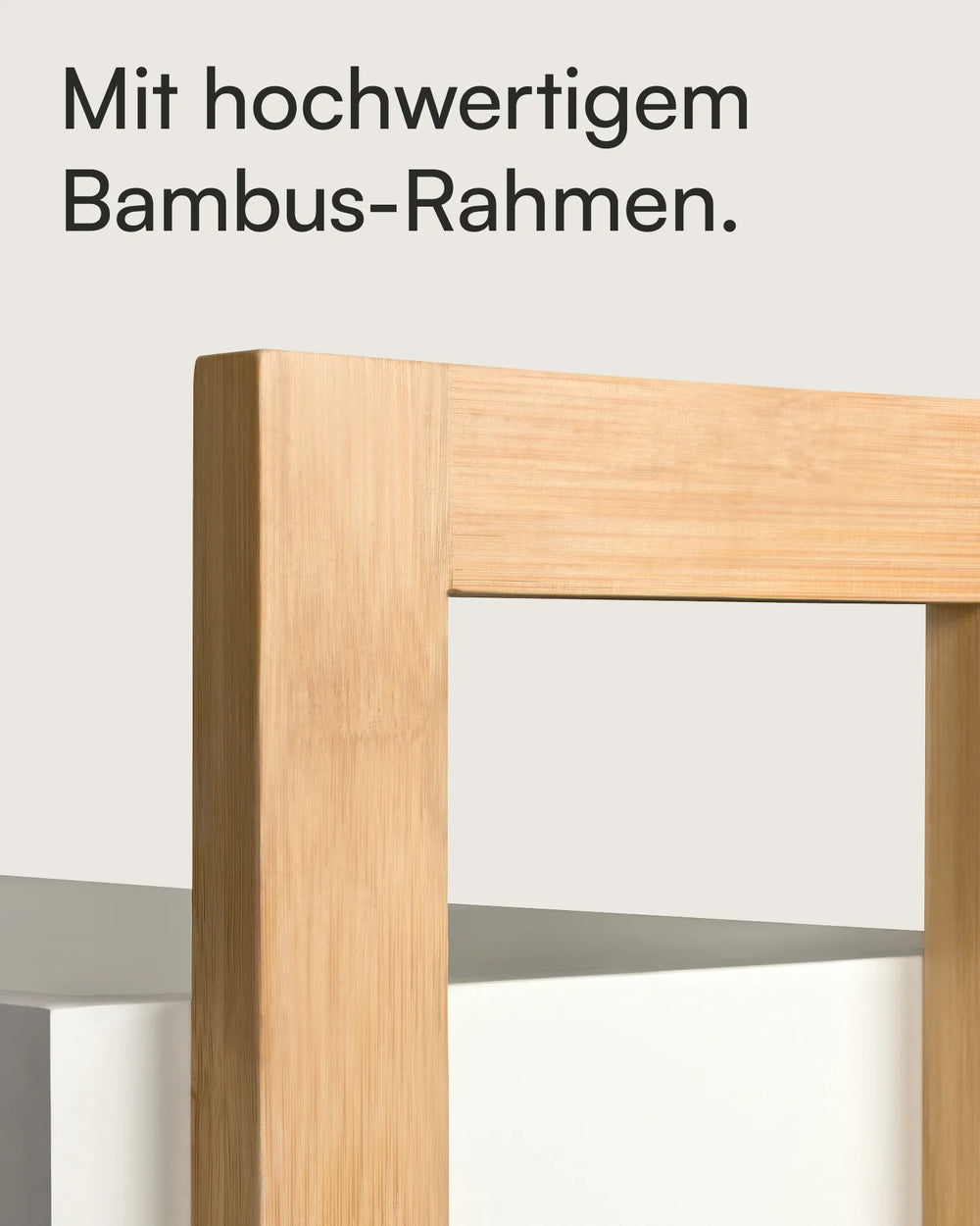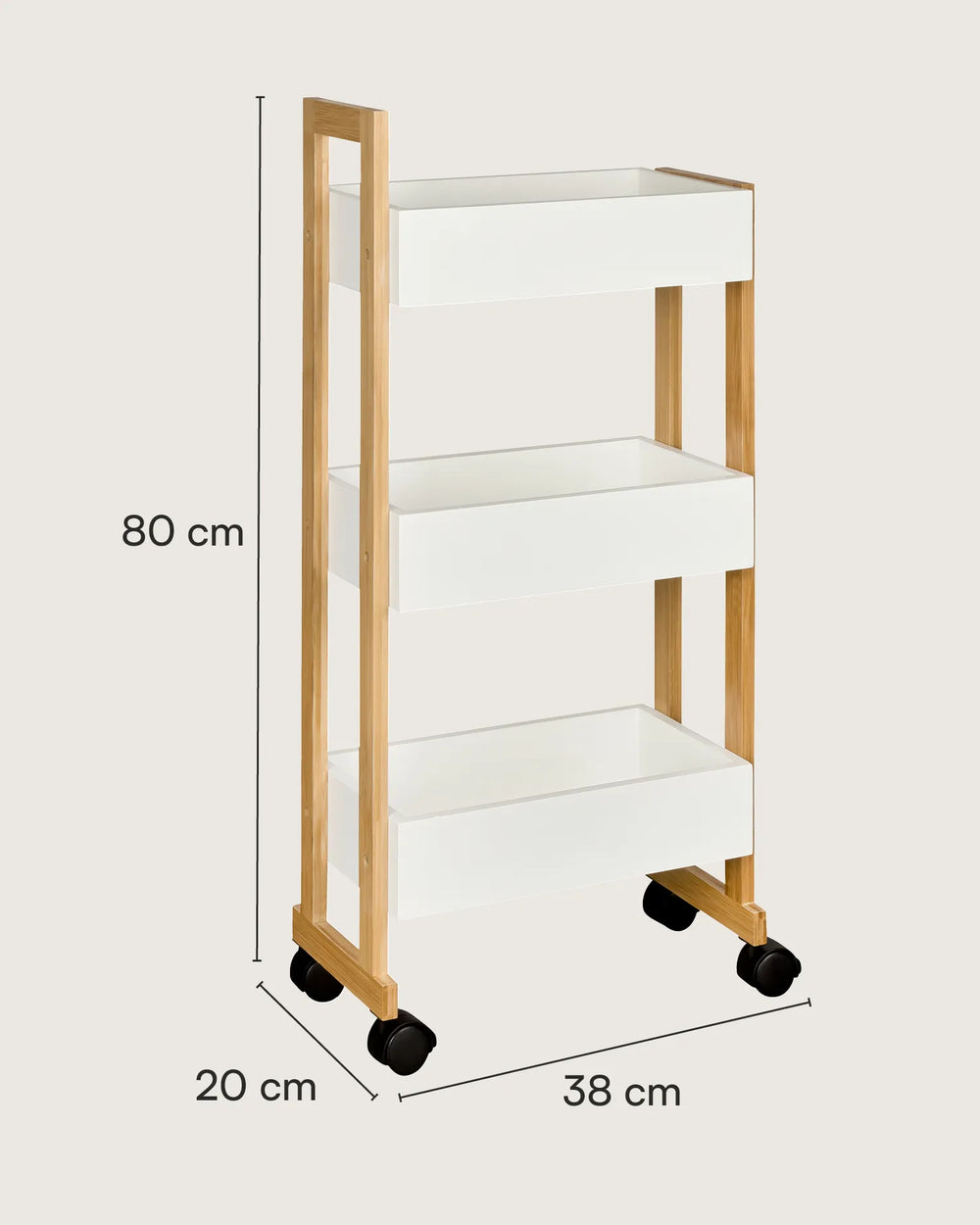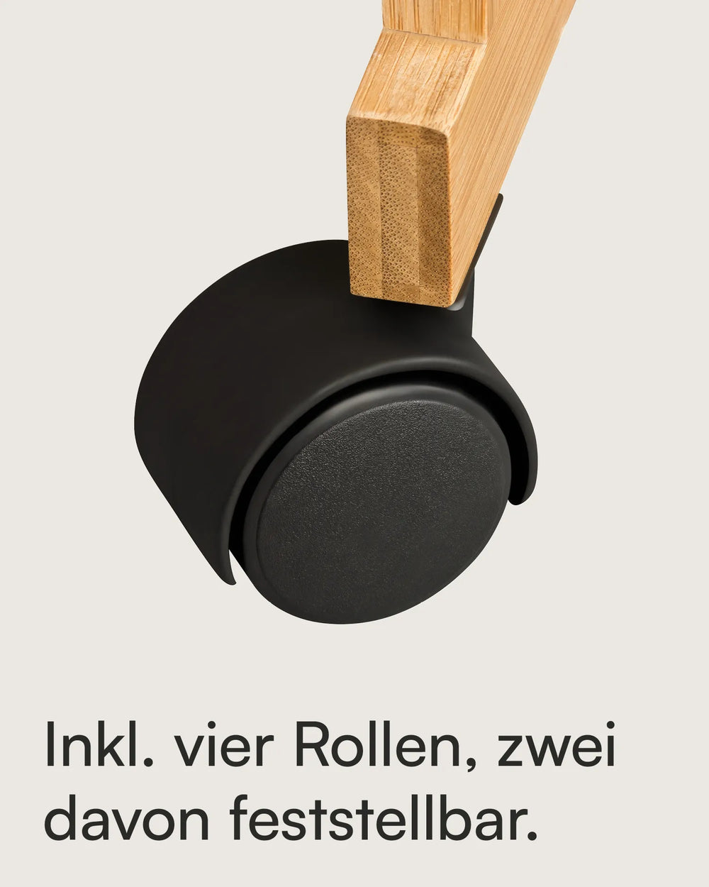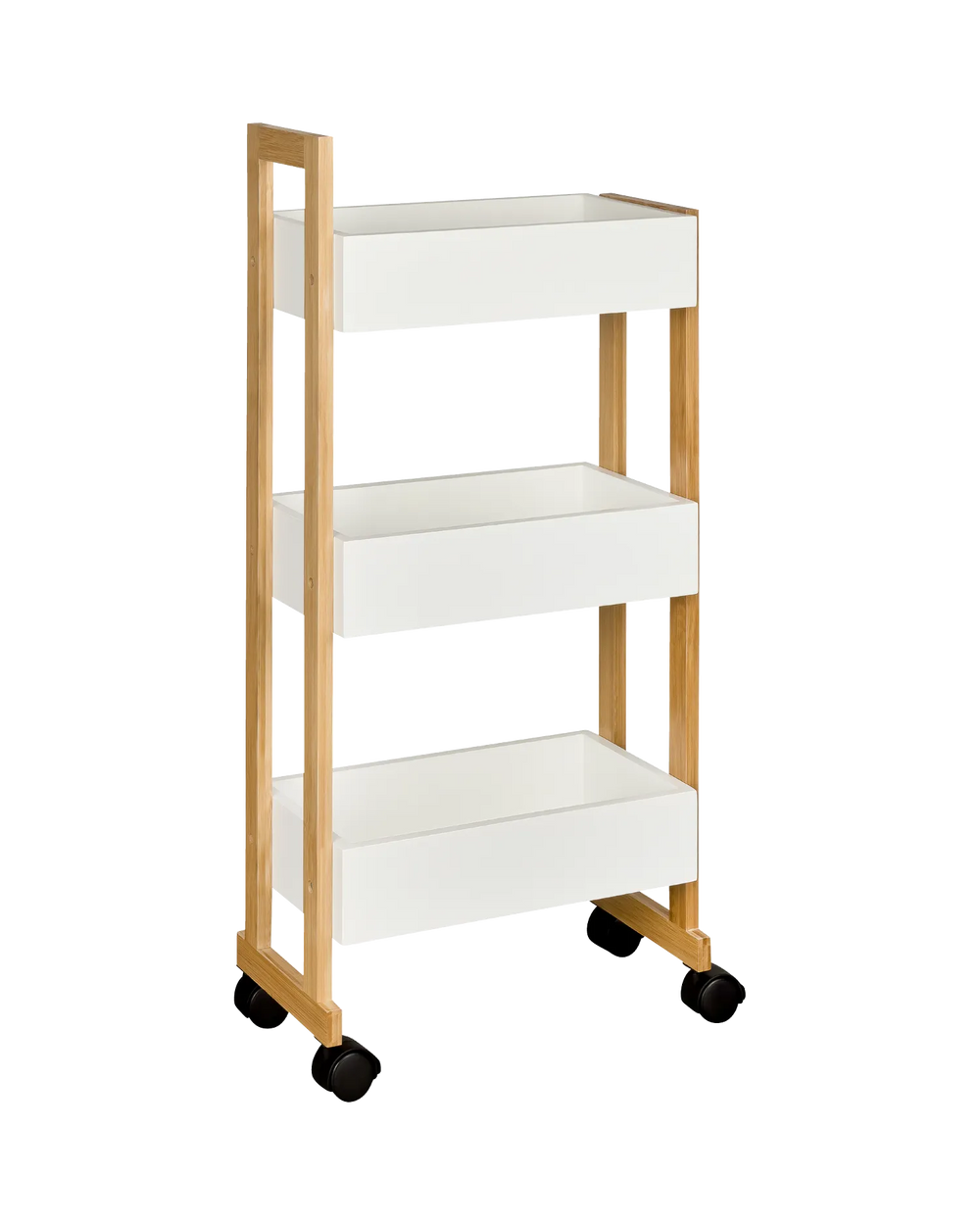 Ablagekörbe aus MDF, Rahmen aus Bambus und vier Rollen, zwei davon feststellbar