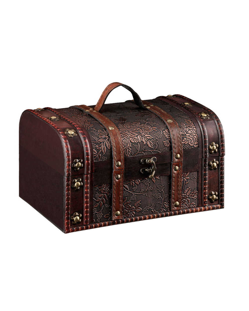 Die Shelfmade Schatzkiste ist eine wunderschöne Holztruhe, die aus robustem Sperrholz gefertigt und teilweise mit Kunstleder bezogen ist.