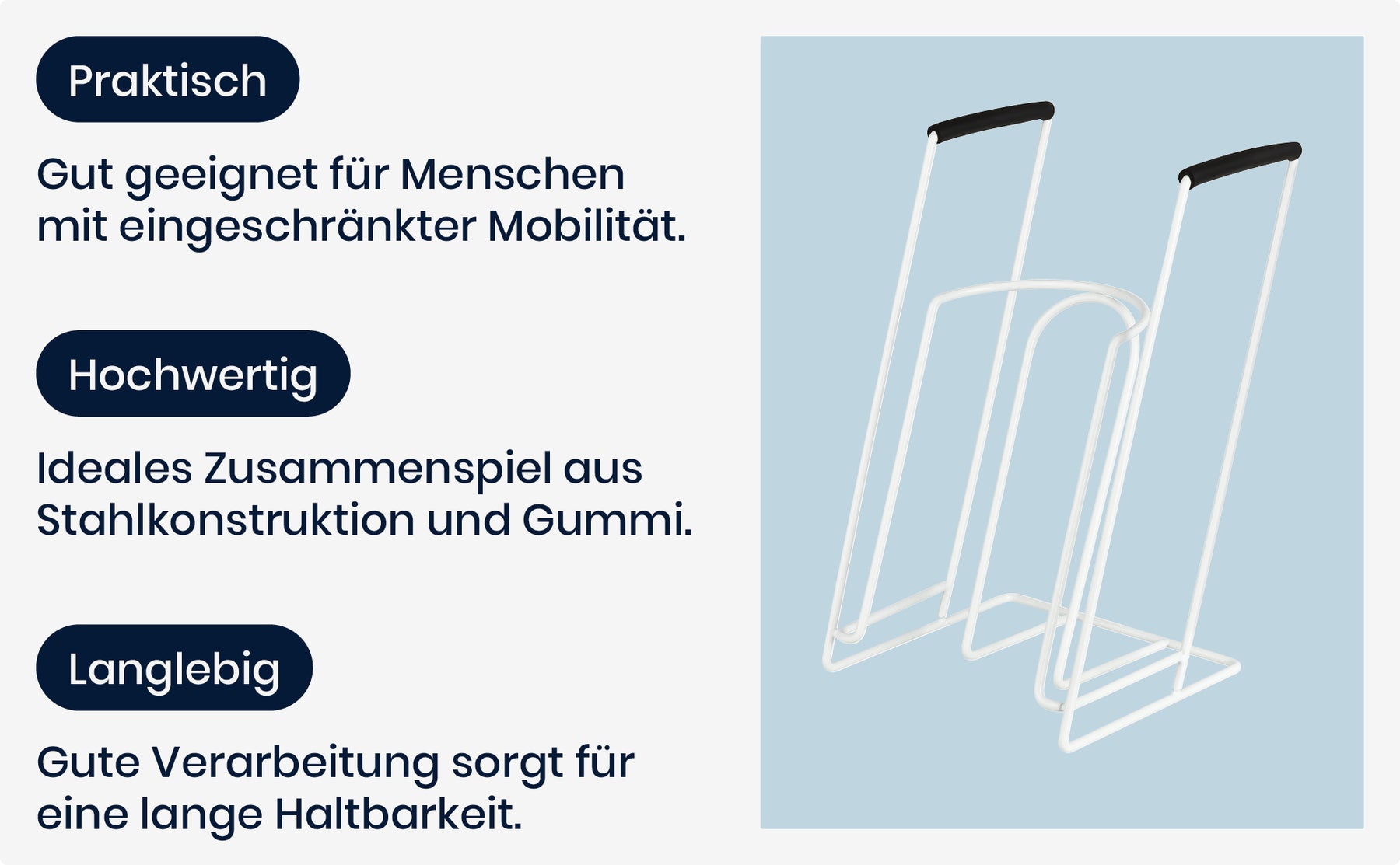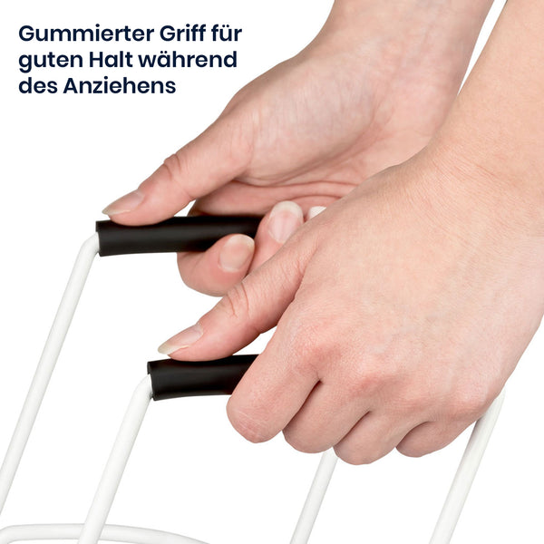 Die Strumpfanziehhilfe ist trotz ihres geringen Gewichts extrem robust und strapazierfähig. Die gummierten Griffe sorgen für guten Halt während des Anziehens sowie die robuste Verarbeitung sorgen für eine reibungslose Nutzen – und das jeden Tag!