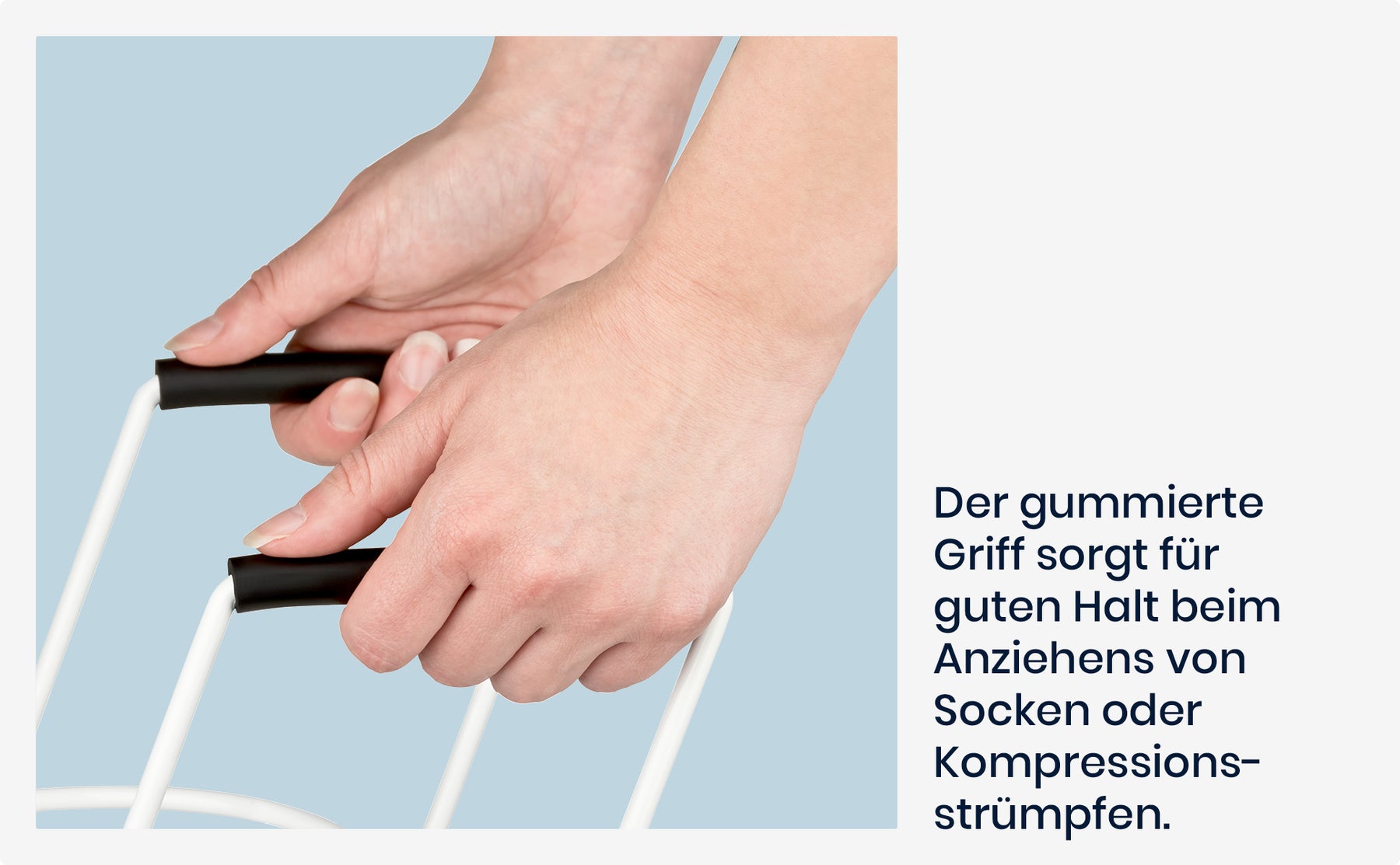 Ein Hilfsmittel, das das Anziehen von Kompressionsstrümpfen und Strumpfhosen erleichtert.